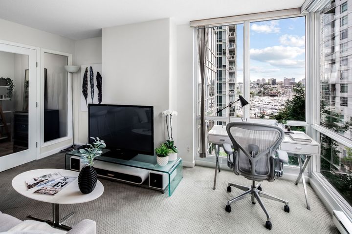 Yaletown living right at the foot of Vancouver’s Seawall with a great view of the marina right from your living room! It doesn’t get much closer to the ocean than this. Look out your living room window directly at the ocean every day and walk out the front door to find yourself just steps away from some of Yaletown’s best shops, restaurants and coffee shops including OED, Provence, Urban Fare and more. This bright 2 bed, 2 bath + den home is move-in-ready or a clean slate for a design refresh to build immediate equity. Lots of windows, a built-in eating bar, and a private balcony add to the exclusive feeling of this home. Marinaside Resort is a well-regarded building with world class, resort style facilities including a swimming pool, a sauna/ hot tub, meeting & party rooms, a gym and a 24hr concierge! This home also includes insuite laundry, 1 secured parking spot and a storage locker.  Rentals for a minimum of 90 days are allowed, as well as 2 pets allowed.