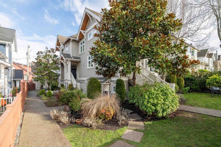 The one you have been waiting for... This gorgeous craftsman inspired 2 bedrms & 2.5 bathrms townhome truly feels like a house w/ its front & back entrances and windows on three sides. Over $85,000 spent over the last 5 years. The main floor offers a great open concept living/dining rm w/ high 9' ceilings, fireplace, fully renovated gourmet kitchen w/ s/s appl., gas range, a powder rm & storage. Upstairs offers 2 Bedrms w/ vaulted ceilings, luxurious master 5 piece ensuite, 2nd bath, an office & laundry. Check out the stunning patio! Pets & Rental OK.Next to Mt. Pleasant park, community center, Simon Fraser Elem. & Main St. w/ its trendy rest, coffee shops & stores! Mt Pleasant living at its finest in this quiet boutique 4-unit complex! A REAL GEM!