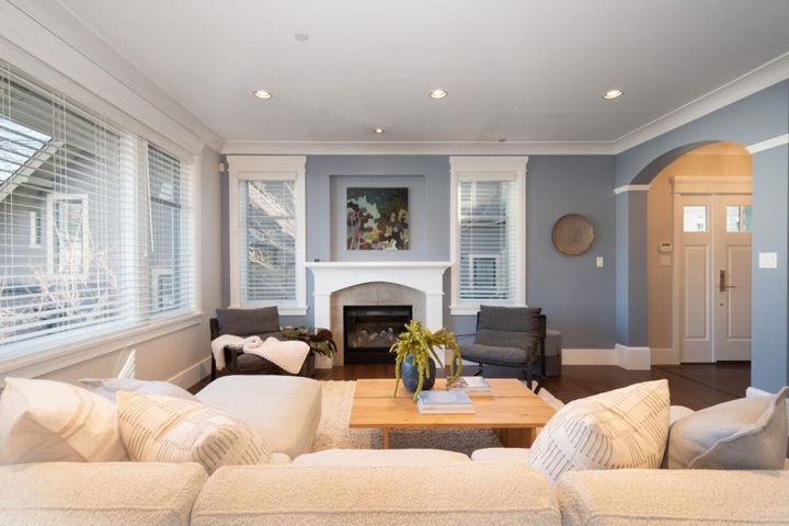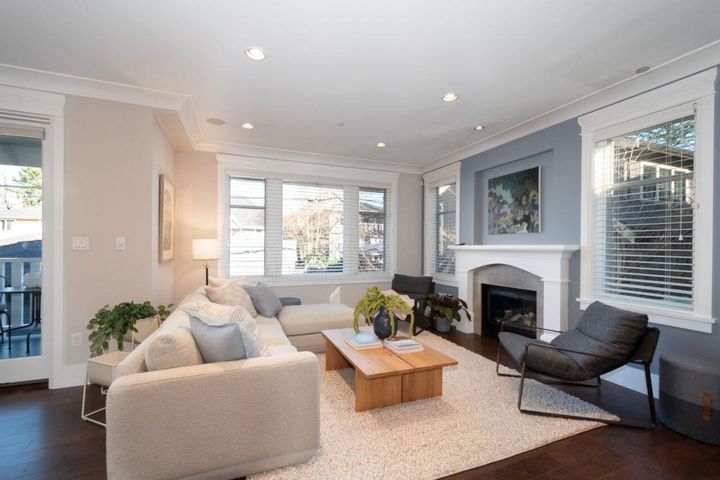 Heritage conversion in 2012 with recent renovations to kitchen & primary ensuite bath in 2019. LOCATED IN LOWER SHAUGHNESSY on the QUIET side of the building, this bright, 2 level unit is one of 4 in the development. Built by renowned builder GH Street Ltd, it offers 2 bdrms & den (3rd bdrm) w/ 3 1/2 baths. Primary bdrm w/WI closet & soaker tub/sep. shower. Lovely open design w/Miele SS appliances, gas range, Quartz counters, custom pantry & bay windows. Beautiful leaded glass accents, HW flrs, radiant heat & ample custom built cabinetry & desks. French Doors off dining open to covered porch w/gas outlet for BBQ & gate (perfect for pets/children). PRIVATE landscaped yard & patio. 1 car garage, locker, & bike storage. Walk to S Granville shops & restaurants, Arbutus Greenway, West Broadway.