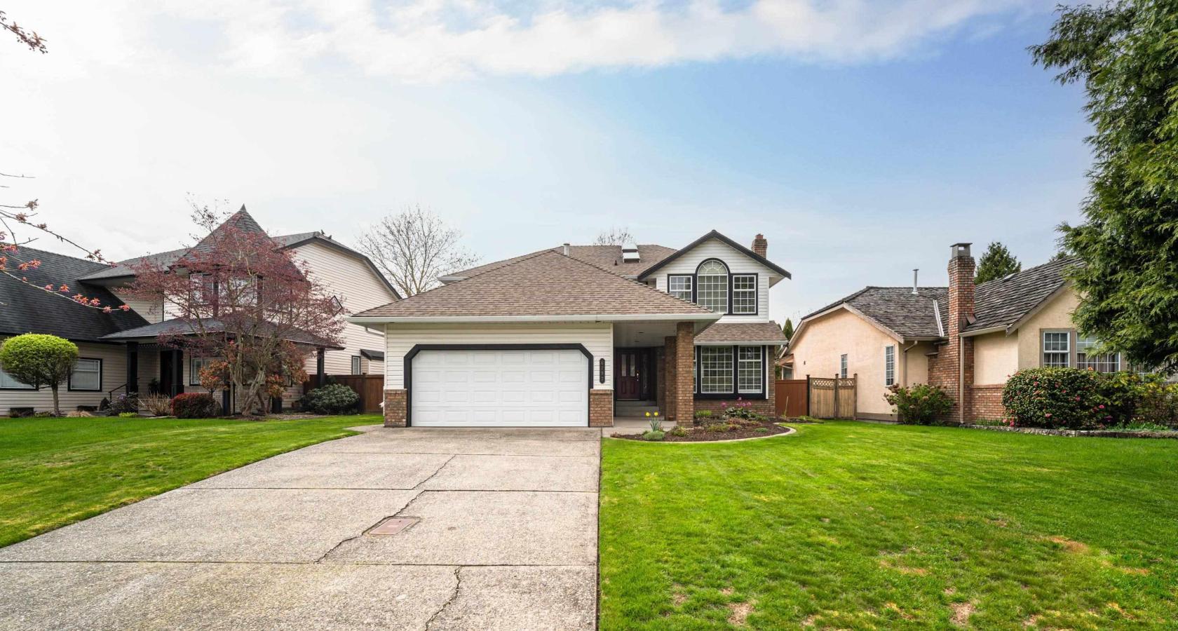 Truly immaculate Eagle Crest family home! Beautiful manicured gardeners dream with a sunny SW facing backyard. 2 storey, 5 bdrm + 3 bath on a large lot. Downstairs with laminate flooring throughout pillars & crowns accent the foyer & formal living/dining room with gas fireplace. The kitchen has gas stove & slate back splash and overlooks family room with stream stone gas fireplace. Bedroom/den and laundry room & a powder room on main. Upstairs has 4 nice sized bdrms. Primary bdrm, en-suite w/extra long soaker tub. There is RV prkg & a lovely private yard w/big covered patio. Close to schools, transit & shops.