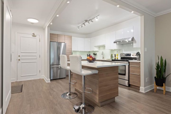 Garden patio oasis! This premium home has been meticulously updated throughout, leaving you nothing to do but move your house-sized furniture in and enjoy. Finally, a home with enough living space to actually...live! Enjoy blended indoor-outdoor living making this nearly 1000sf home feel more like 1200 with a 211sf patio all to yourself. Newport Quay is just steps from the iconic Vancouver Seawall. You are minutes from Granville Island you won't believe Downtown is just across the bridge with the lush greenery & quiet courtyard beyond private outdoor space. The Canada Line is mere blocks away making travel a breeze. This well maintained, Freehold building is a rare gem. Incl 1 parking & 1 locker.