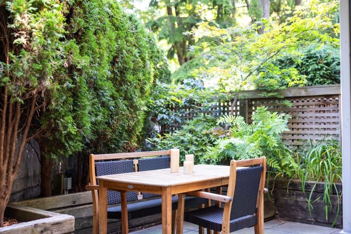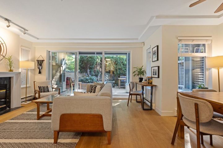 This rarely available, south-facing corner unit in the heart of Fairview has it all! Open-concept living and dining area, a spacious bedroom, and a large private outdoor patio on the front side of the building, perfectly tucked away from the street for added privacy. Featuring beautiful oak floors, stainless steel appliances, in-suite laundry, and a gas fireplace. The building is exceptionally well-maintained with a full rainscreen, newer balconies, windows, sliding doors, updated roof, plumbing, and more. 1 parking and storage included. 2 pets and rentals are welcome. Just steps from transit, dining, shops, VGH, schools, parks, and more! Call to book your private viewing!