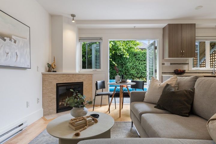 Nestled on a quiet and beautiful, tree-lined street in the heart of highly desirable upper Kitsilano, this one-level garden suite offers peaceful, easy living in a coveted Westside location. Inside, you’ll find a large primary bedroom with ample storage, a generous second bedroom, warm hardwood floors, caeserstone countertops, porcelain tile, radiant in-floor heating in the bathroom, a natural gas fireplace and a suite of high-end stainless steel appliances. Step outside onto your private patio — a lush, green retreat ideal for your morning coffee or unwinding on warm summer evenings. Built by a reputable developer, this home reflects thoughtful quality throughout and is just steps from shopping and all amenities.