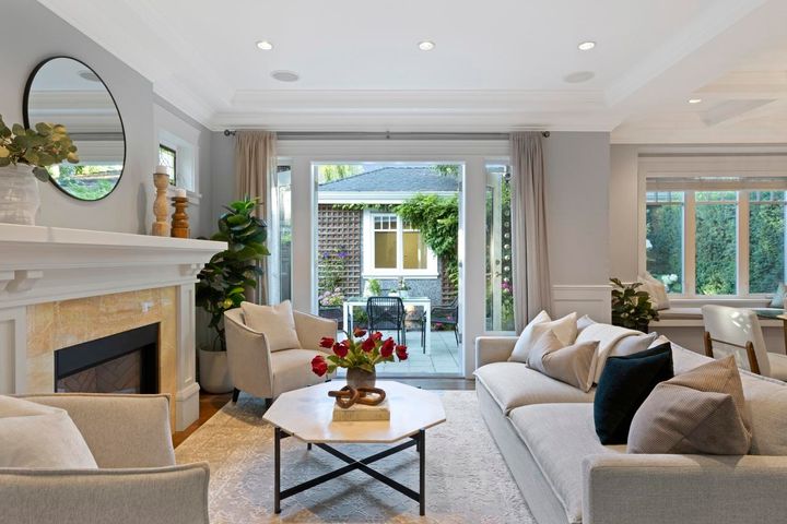 This Craftsman-style half duplex offers timeless design and the quintessential Vancouver lifestyle. Thoughtfully built with great scale and proportion, the home features an incredible living space that fees distinct yet connected, with excellent flow throughout. French doors off the living room open directly onto a lush garden with mature greenery & built-in irrigation for an easy lifestyle. Upstairs, both bedrooms have vaulted ceilings, creating an airy, elevated feel, &and the bathroom is finished in floor-to-ceiling Carrera marble. Custom stained glass adds warmth & character, while a finished crawlspace provides generous storage. All just minutes from Jericho Tennis Club, RVYC, beaches, cafes, & shops. OH Thurs Jul 31 4:30-6:30 PM, Fri Aug 1 10-12 PM, Sat 1-3 PM, Sun 2-4 PM.