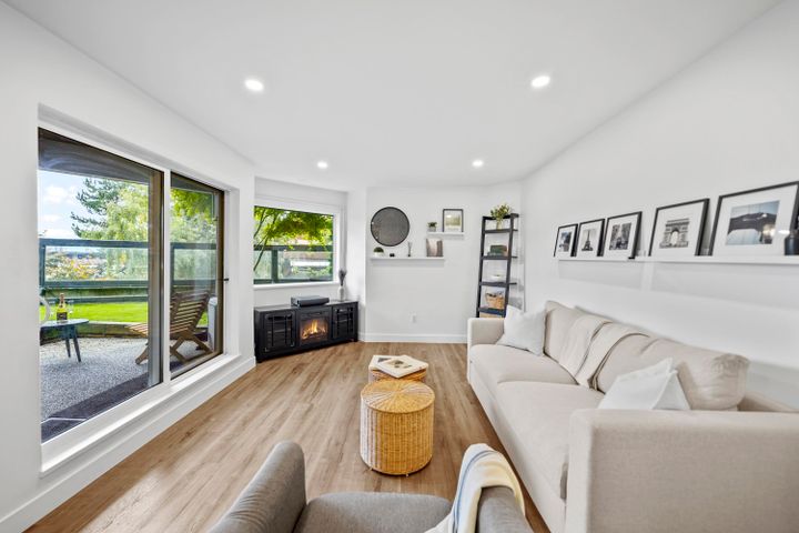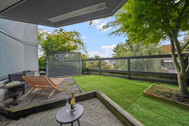 Welcome to Granville Island Village! This FULLY Renovated, 2 bedroom unit has been meticulously updated from top to bottom with no expense spared. The kitchen is equipped with single slab quartz countertops, new GE profile SS appliances and custom-made, solid wood cabinetry that has ample storage. The apartment's electrical has been completely re-wired and the waterproof vinyl plank has in-floor radiant heating throughout as well as in the marble tiled bathroom. The large Primary bedroom has custom built closets and looks out over the North Shore Mountains. The oversized patio has more than 250 Sq FT of usable space and gives the feel, security and privacy of your very own backyard. 5 minute walk to Granville Island!! Comes with parking, storage and in-suite laundry.