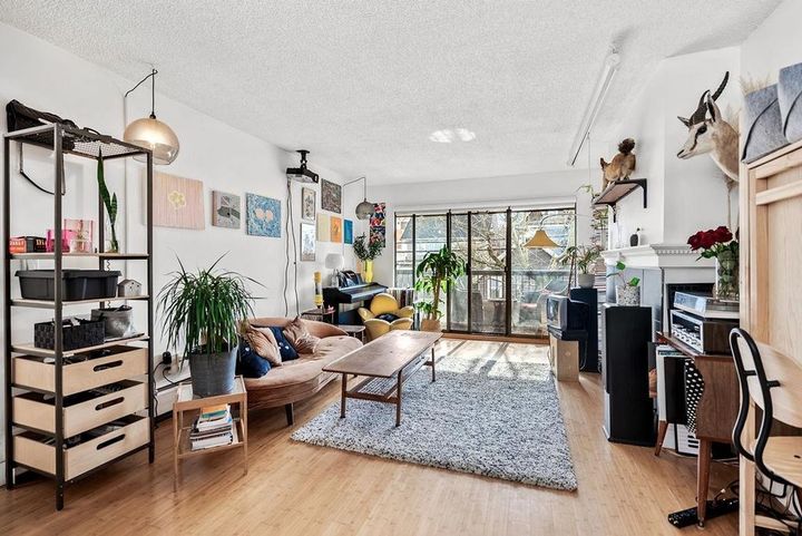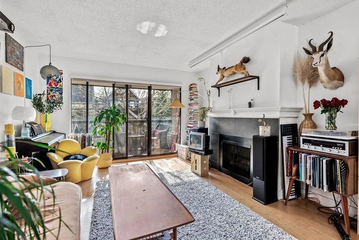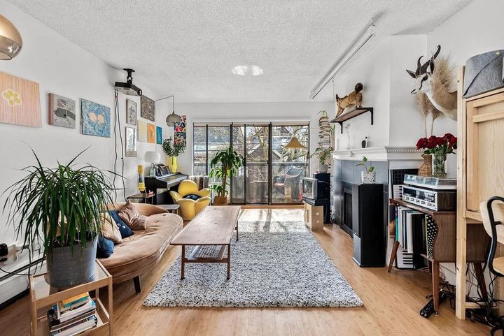 Top floor south-facing home w/ vaulted ceilings and skylights - drenched in light! The living room, w/ cozy gas FP opens onto a large, covered balcony. The dining leads into the previously updated kitchen; perfectly functional as-is or offering great bones for a refresh. In-suite storage doubles as a pantry, the recently updated bath features a newer vanity, toilet, flooring and tub surround. Bonus - just 1 shared wall! N of Broadway and walking distance to Vancouver’s new Digital District including Emily Carr Centre for Digital Media, Samsung and 400,000 sqft of future tech office space, Landmark Gardens isn’t just in a trendy and convenient location, it’s an investment in an area w/ huge future value. VCC Clark Skytrain is a 5 min bike or 15 min walk. Cats ok. 1 parking & 1 storage incl.