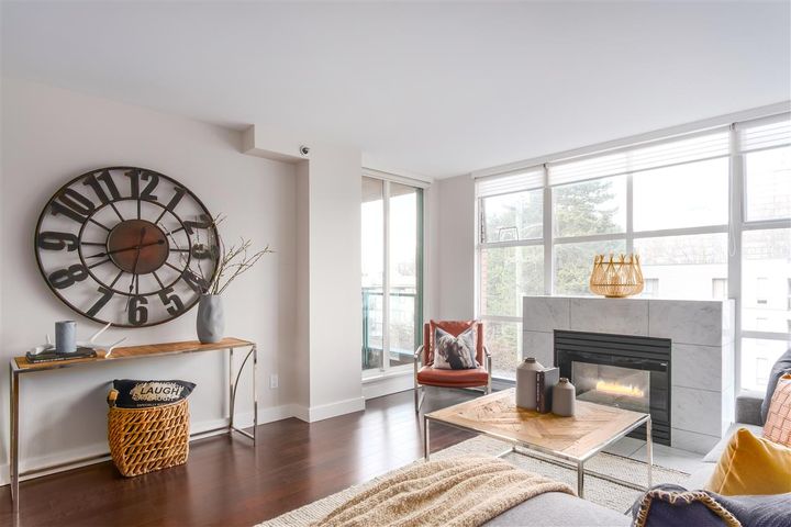 Premium extra large 1 bed & den at Pacifica. This beautifully updated city home features generous principal rooms that will easily accommodate your house sized furniture. The living area overlooks quiet W 14th Ave & features a natural gas fireplace. Through the sliding glass doors is a large covered patio which can be enjoyed all year long. The kitchen is tastefully updated w/ stainless steel appliances, stone countertops, mosaic tile backsplash & flat white shaker cabinetry. Off the kitchen is a flex space which can be used as an office, nursery, den or spare bdrm. Perhaps most unique is the nearly 170′ master bdrm which easily accommodates a king bedroom suite & has a luxurious walk through closet. Pacifica is known for its resort-like amenities & unbeatable location. Open Dec 21st 2-4pm